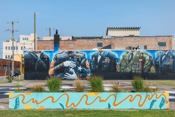 Virginia Beach muralist and tattoo artist Corinna Sayward joined a community effort to replant and paint the Cofer Lot in the spring of 2024. Joined by Rich Justis, the two refreshed a planter donated by ET Gresham.