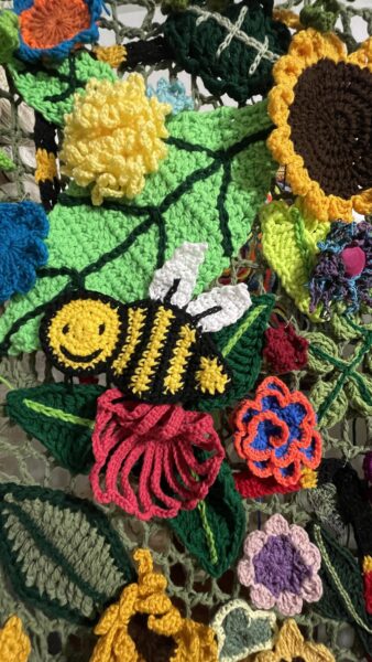 Composed of crocheted flowers, leaves, and other organic forms, the piece draws inspiration from how the NEON District has flourished over the years; growing from its roots in community collaboration into a hub of art and connection. Each stitch reflects the shared energy that keeps the district blooming.